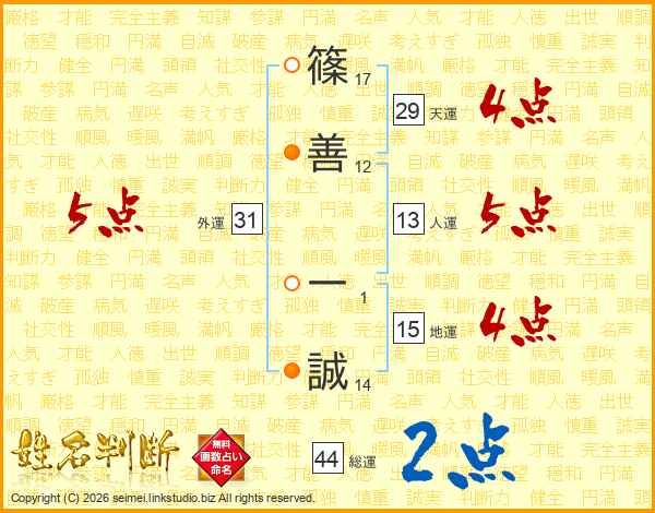 篠善一誠さんの総運は44画の2点!