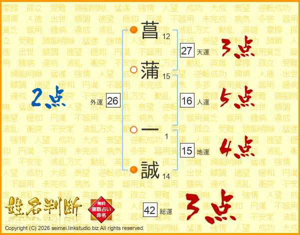 菖蒲一誠さんの総運は42画の3点!