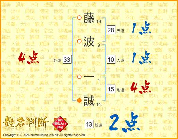 藤波一誠さんの外運は33画の4点!