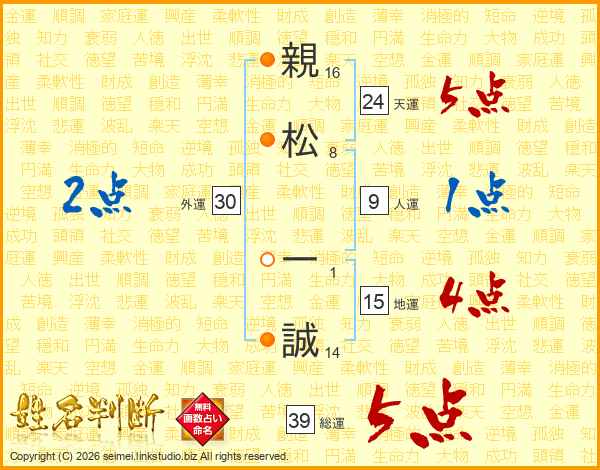 親松一誠さんの総運は39画の5点!