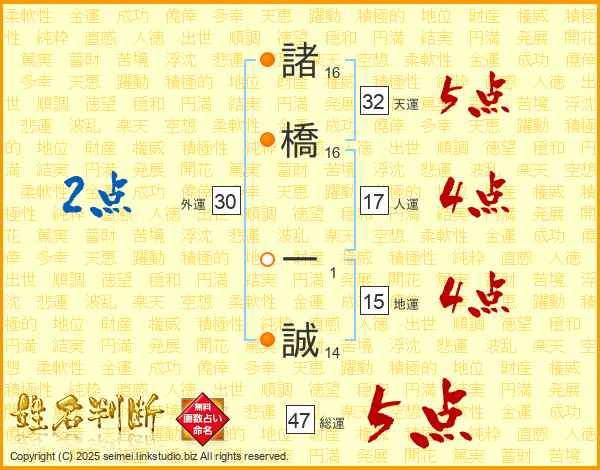 諸橋一誠さんの総運は47画の5点!