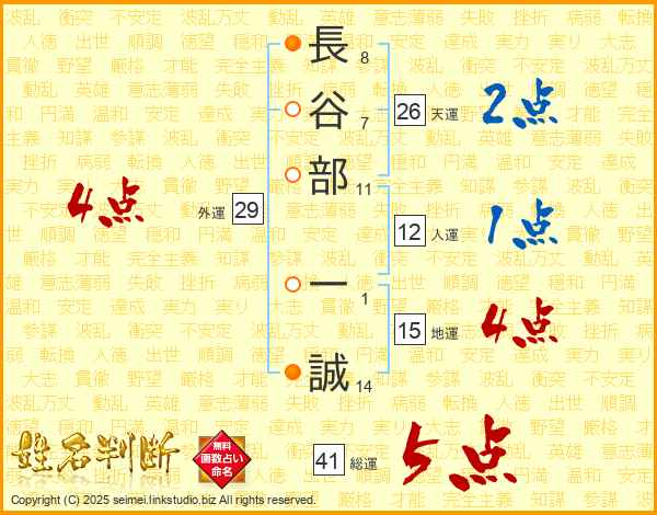 長(8画)谷(7画)部(11画) 一(1画)誠(14画)