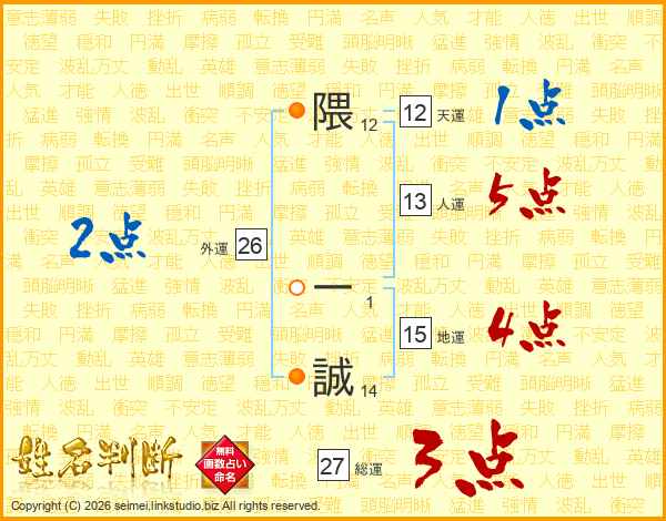 隈一誠さんの総運は27画の3点!