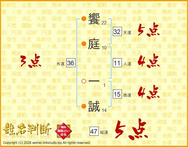 饗庭一誠さんの総運は47画の5点!