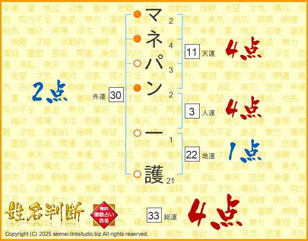 マネパン一護さんの総運は33画の4点!