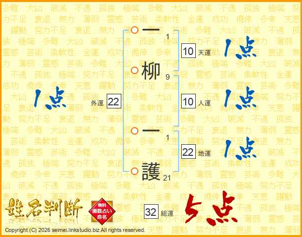 一柳一護さんの総運は32画の5点!