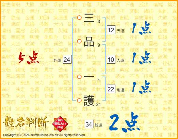 三品一護さんの総運は34画の2点!