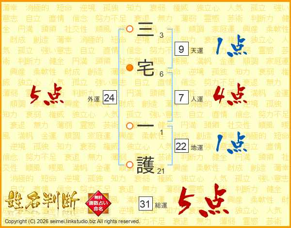 三宅一護さんの外運は24画の5点!