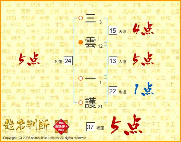 三雲一護さんの外運は24画の5点!