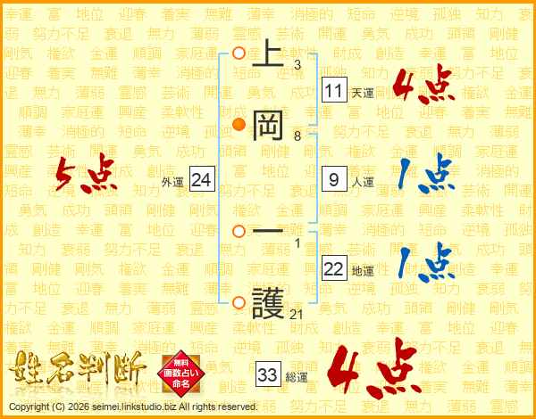 上岡一護さんの総運は33画の4点!