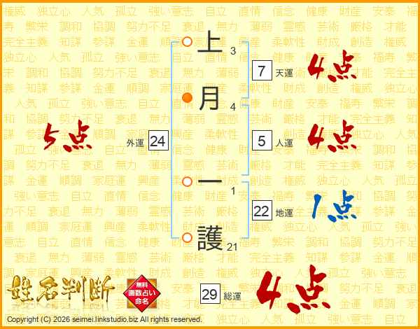 上月一護さんの総運は29画の4点!