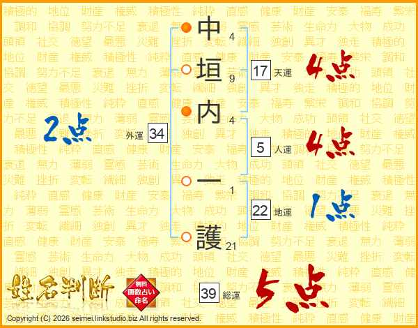 中垣内一護さんの総運は39画の5点!