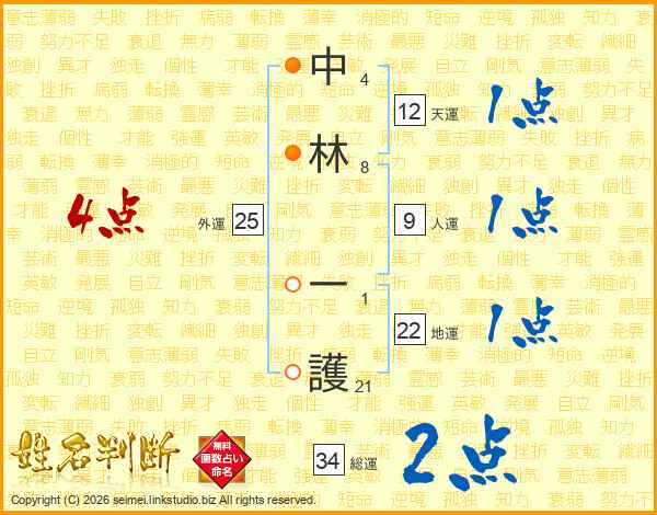 中林一護さんの地運は22画の1点!