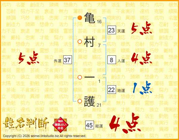 亀村一護さんの総運は45画の4点!