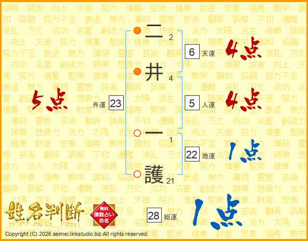 二井一護さんの総運は28画の1点!