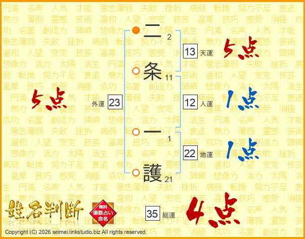 二条一護さんの総運は35画の4点!