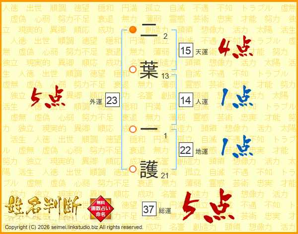 二葉一護さんの外運は23画の5点!