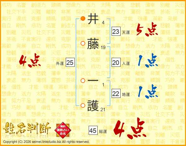 井藤一護さんの総運は45画の4点!