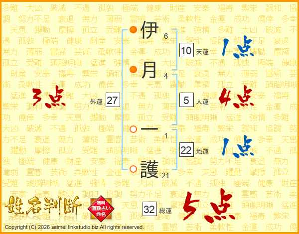 伊月一護さんの総運は32画の5点!