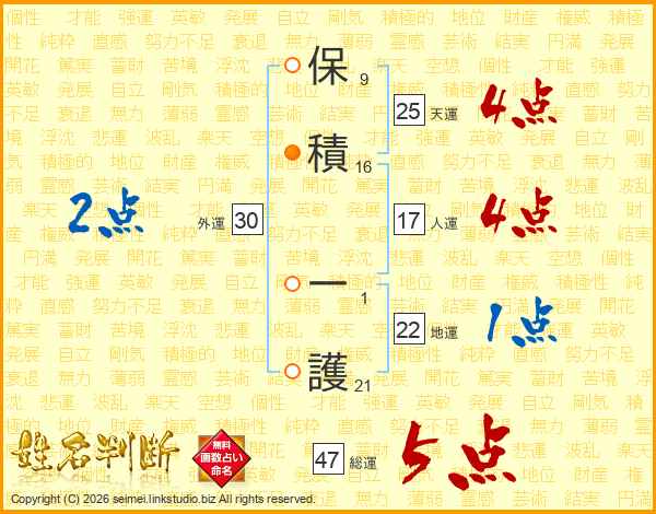 保積一護さんの天運は25画の4点!