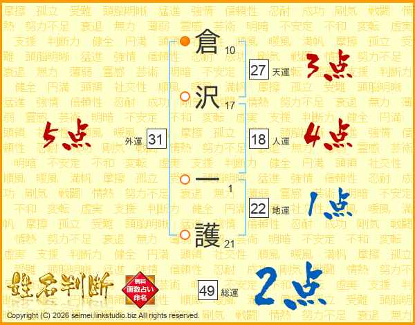倉沢一護さんの外運は31画の5点!