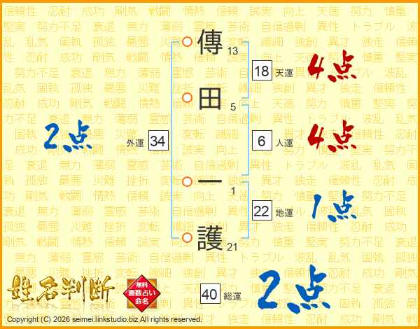 傳田一護さんの外運は34画の2点!
