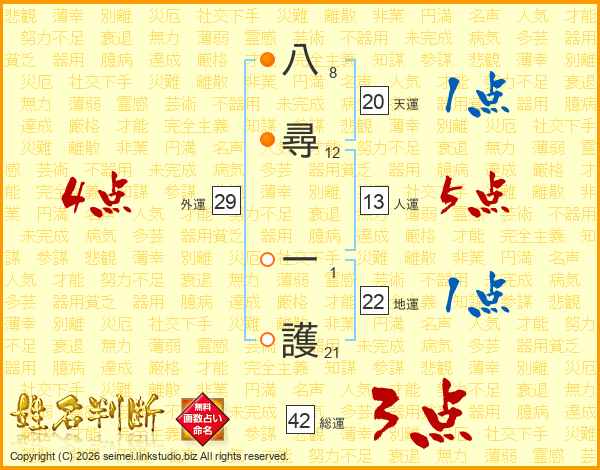 八尋一護さんの総運は42画の3点!