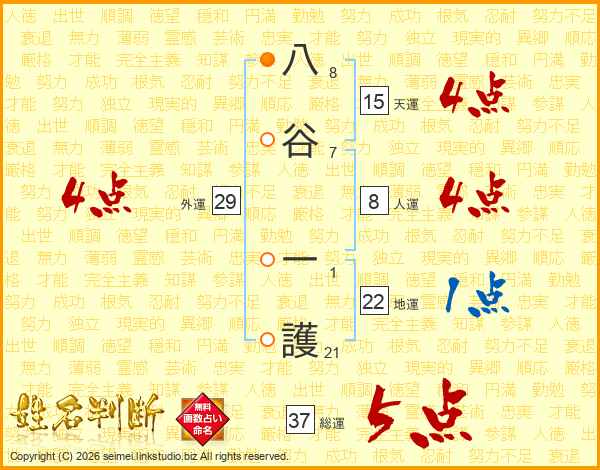 八谷一護さんの総運は37画の5点!