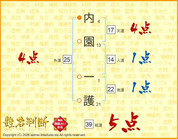 内園一護さんの外運は25画の4点!