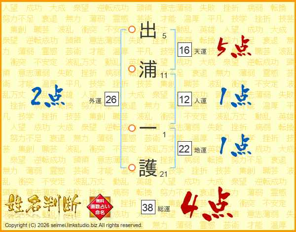 出浦一護さんの総運は38画の4点!