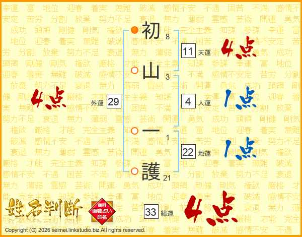 初山一護さんの総運は33画の4点!