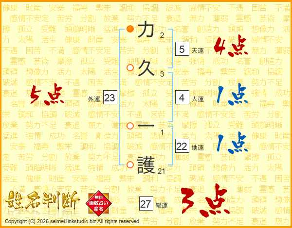 力久一護さんの総運は27画の3点!