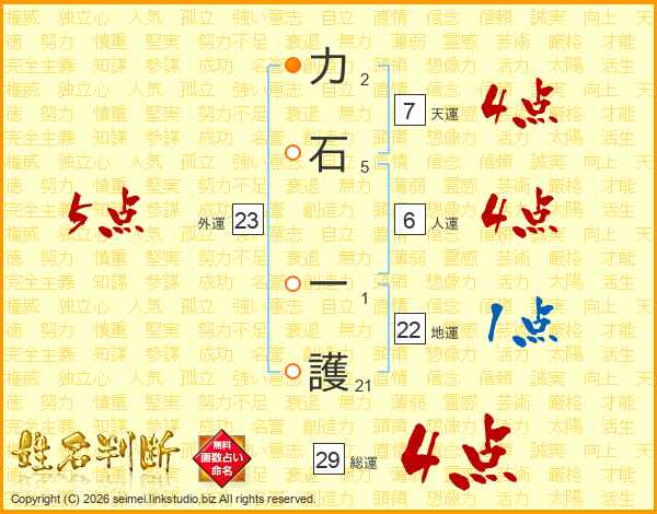 力石一護さんの総運は29画の4点!
