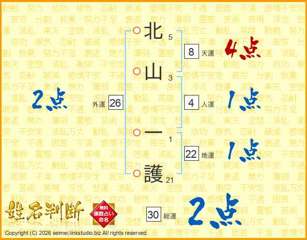 北山一護さんの総運は30画の2点!