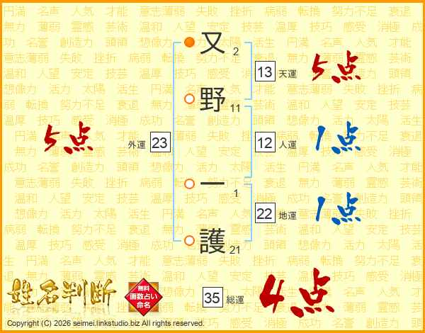 又野一護さんの総運は35画の4点!