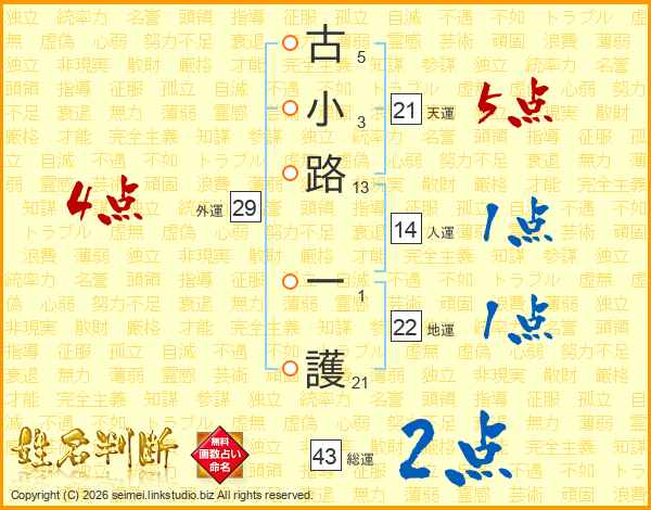 古小路一護さんの天運は21画の5点!