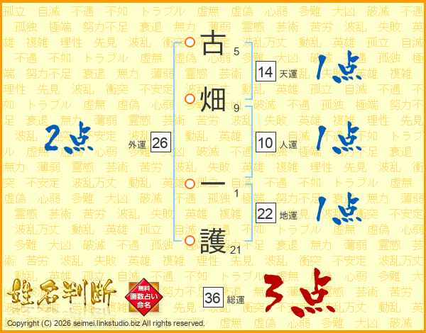 古畑一護さんの外運は26画の2点!