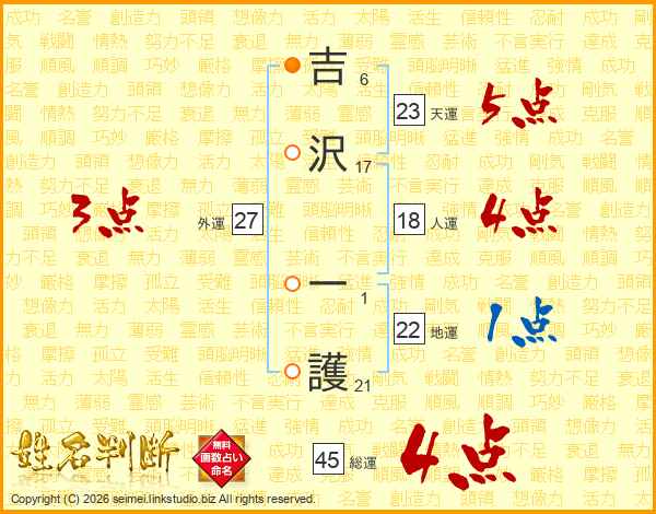 吉沢一護さんの総運は45画の4点!