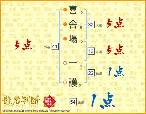 喜舎場一護さんの総運は54画の1点!