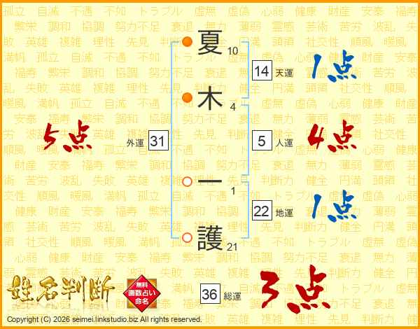 夏木一護さんの外運は31画の5点!