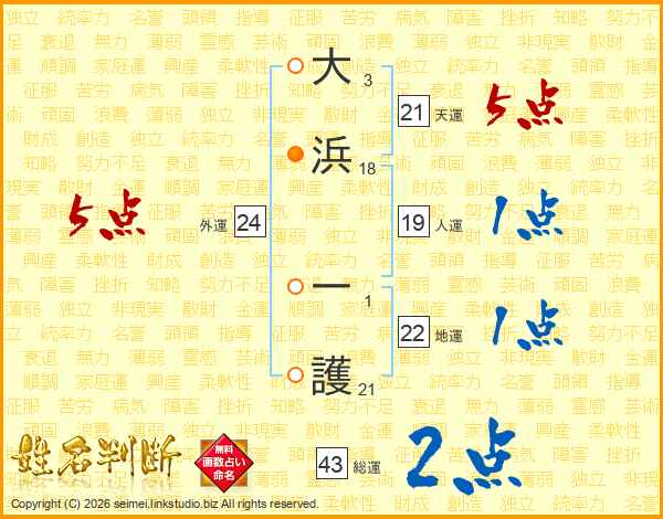 大浜一護さんの外運は24画の5点!