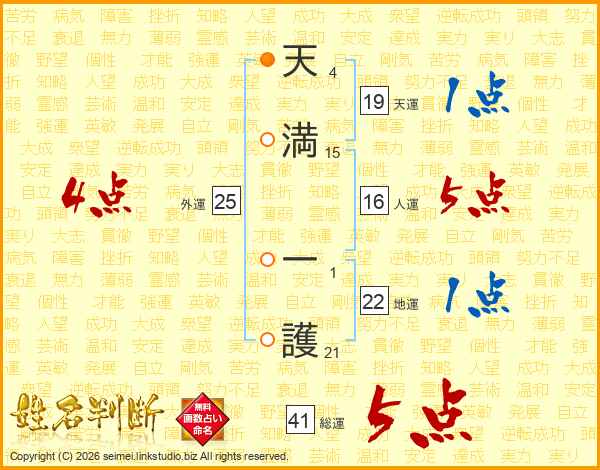 天満一護さんの総運は41画の5点!