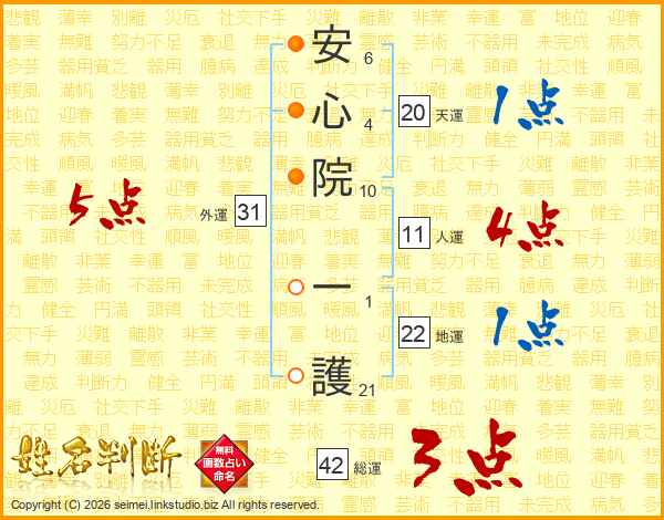 安心院一護さんの総運は42画の3点!