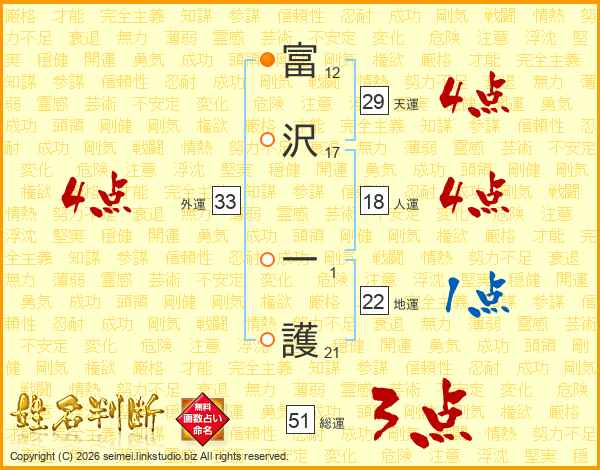 富沢一護さんの外運は33画の4点!