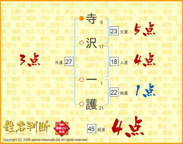 寺沢一護さんの総運は45画の4点!