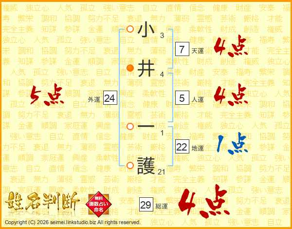 小井一護さんの総運は29画の4点!