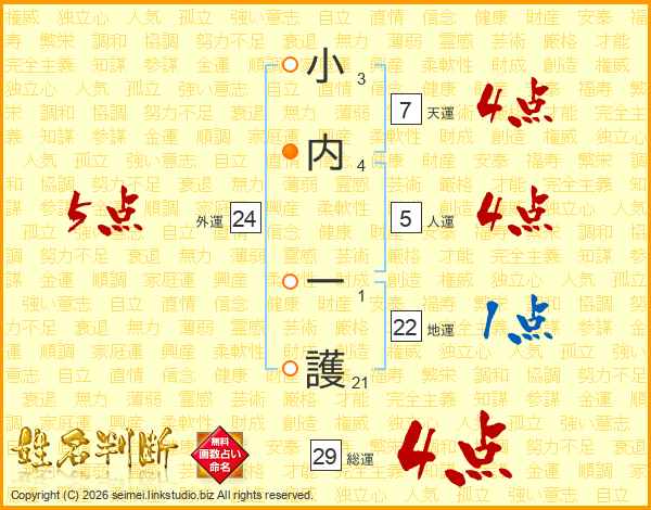 小内一護さんの外運は24画の5点!