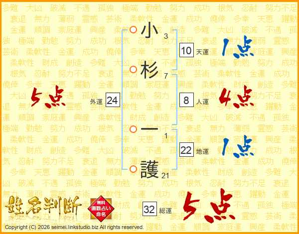 小杉一護さんの総運は32画の5点!