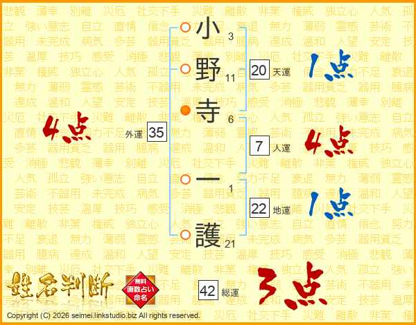 小野寺一護さんの総運は42画の3点!