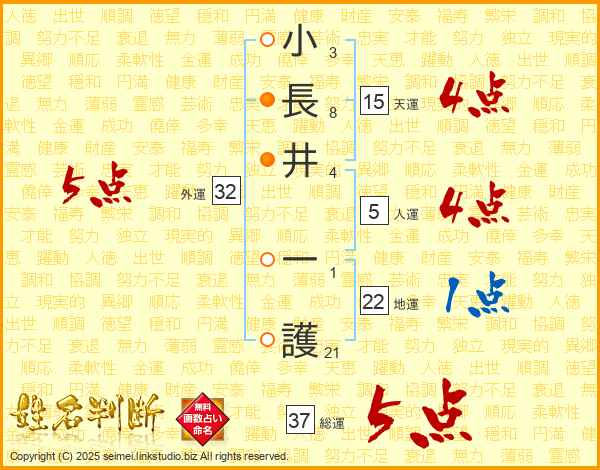小(3画)長(8画)井(4画) 一(1画)護(21画)